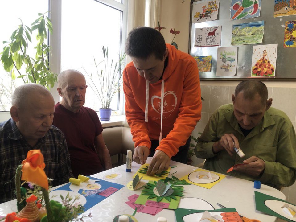 В геронтологическом отделении пожилые жители вместе с внутренними волонтерами досуга создавали праздничные открытки с символикой Пасхи.